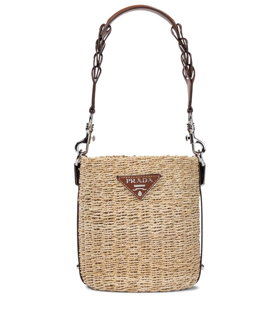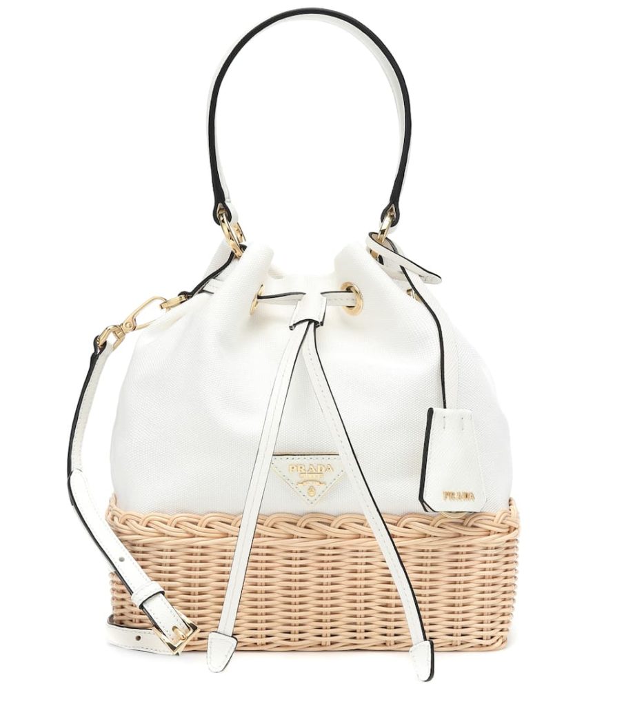 Leather and raffia accessories – such as this bucket bag from Prada – are a key silhouette at the moment. Designed with artisanal flair in a combination of cognac brown and natural beige, it’s framed by a detachable braided handle. Style yours with palazzo pants for an ever-elegant silhouette.