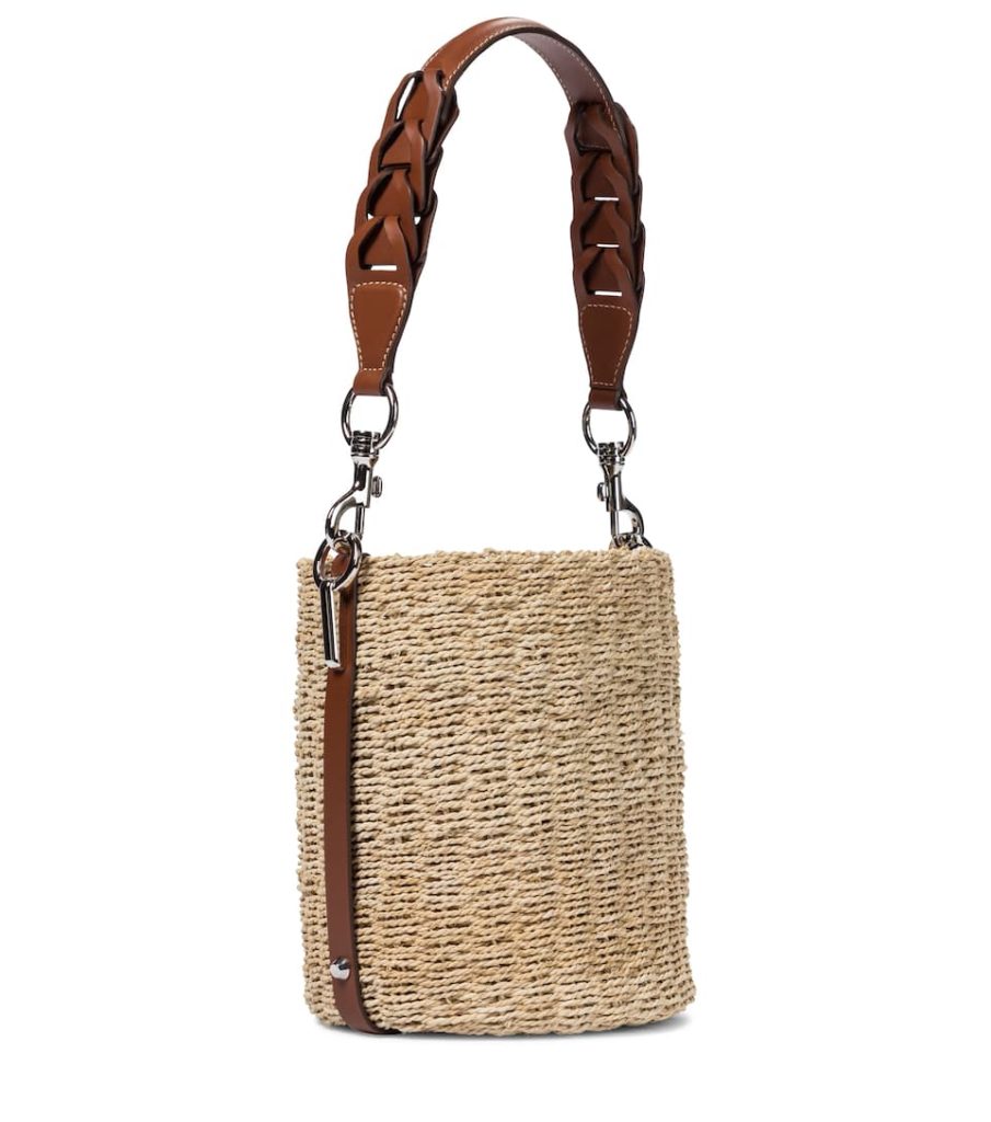 Chloé’s bohemian design sensibilities inform the Marcie Medium tote. More than a little summer-suitable in raffia, this basket-style bag is trimmed with leather top handles and a hardware-adorned pouch. Nestle it in the crook of your arm when strolling by the beach or in the city.