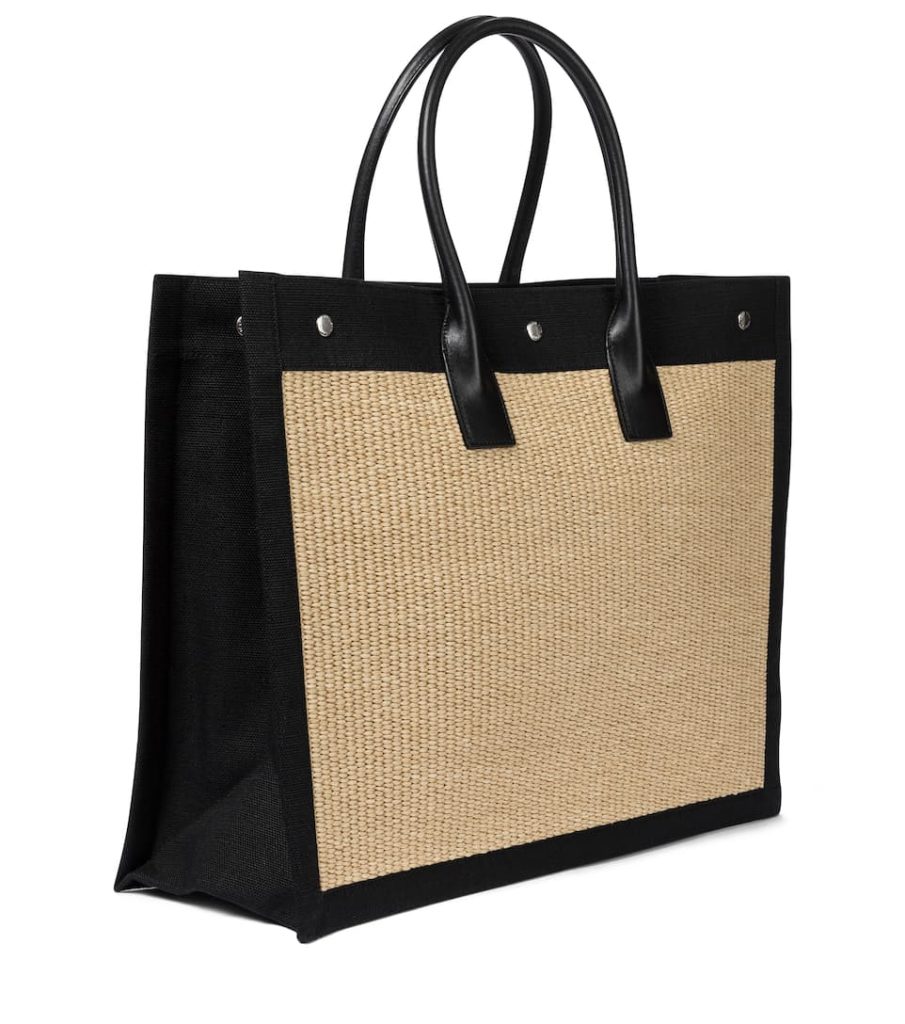Proclaim your affinity for original Saint Laurent with this Rive Gauche canvas and raffia tote. The open-top design has been crafted in Italy with black trim and short leather handles. Hold yours next to the maison’s leopard-printed pieces to tap into an established aesthetic.