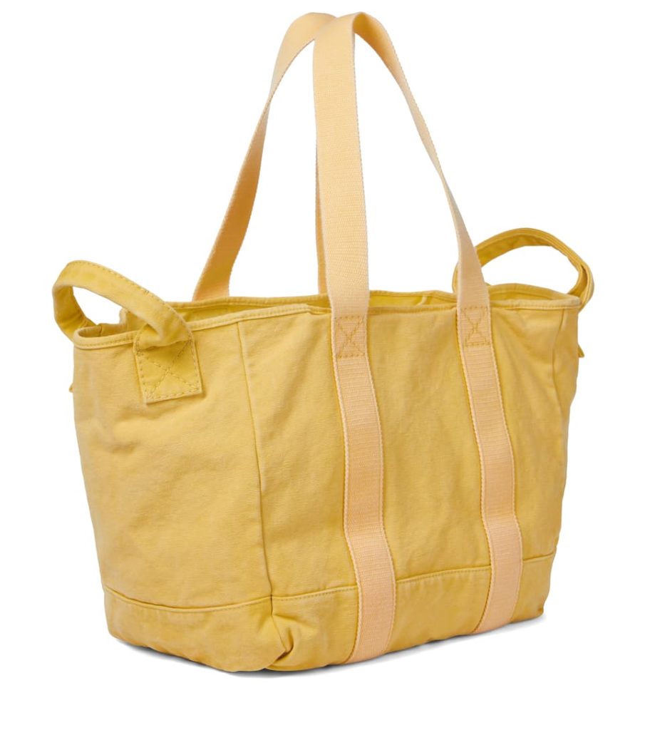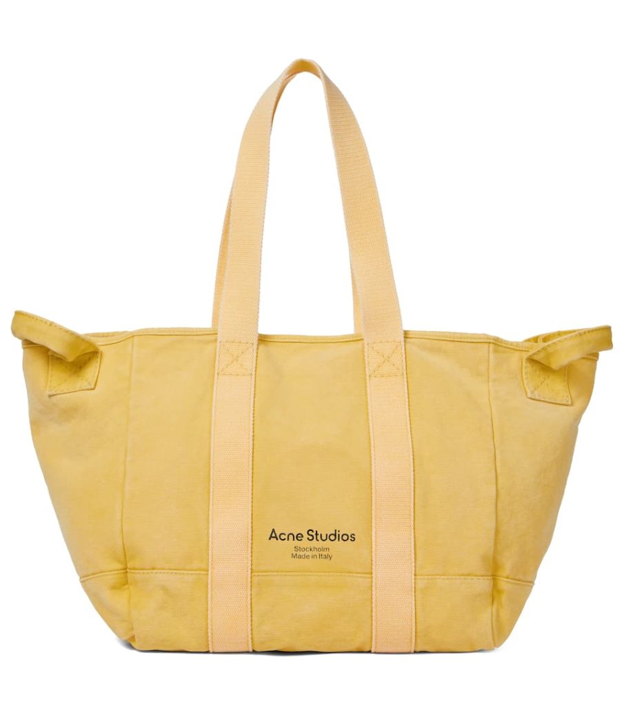 An Acne Studios tote is regularly to be found on the arms of fashion insiders everywhere. True to the Scandi label’s contemporary aesthetic, this capacious piece is made from yellow cotton canvas with two sets of tonal webbed straps – meaning the open-top design can be worn on your shoulders or across the body. Carry it next to the label’s oversized pinstriped suiting.