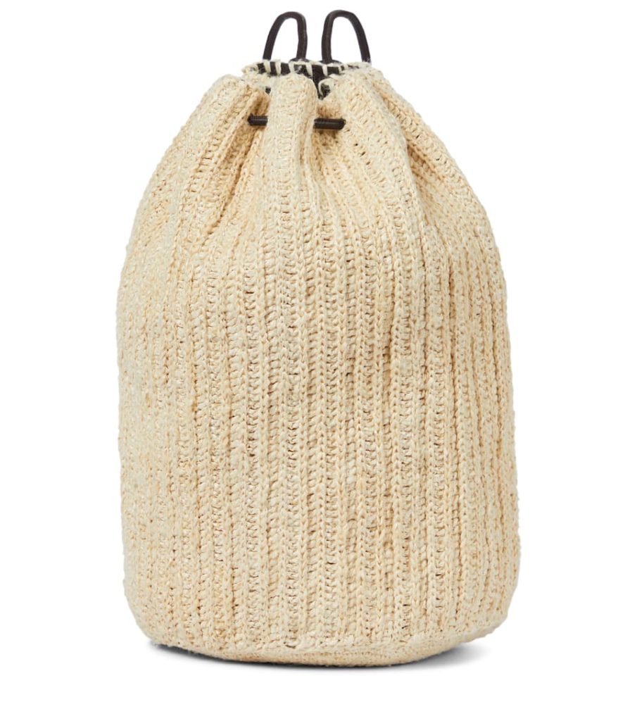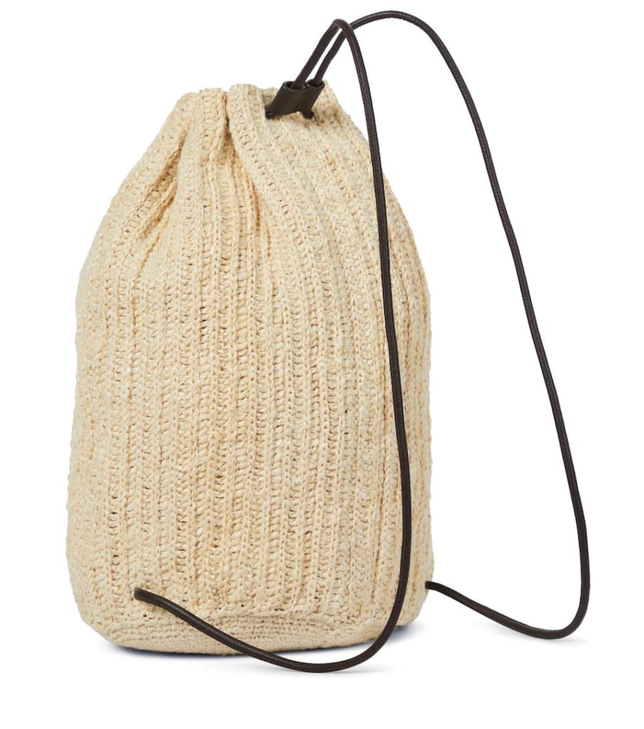 Inspired by designs worn by the label’s stylish founders, the pale beige Massimo backpack is sure to appeal to old and new fans of The Row. Rendered for rising temperatures in hand-crocheted silk and raffia, it’s gathered with black calfskin leather to a drawstring silhouette. Pair its sleek minimalism with muted sundresses.