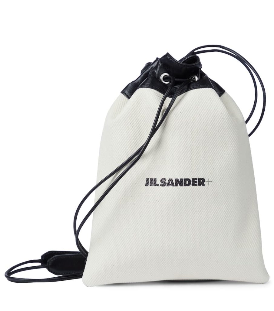 Adopt a minimalist approach to accessorizing with this white pouch from Jil Sander. Made in Italy from durable canvas and black calf leather trim, it has a simple silhouette that pulls together with slim drawstring straps.