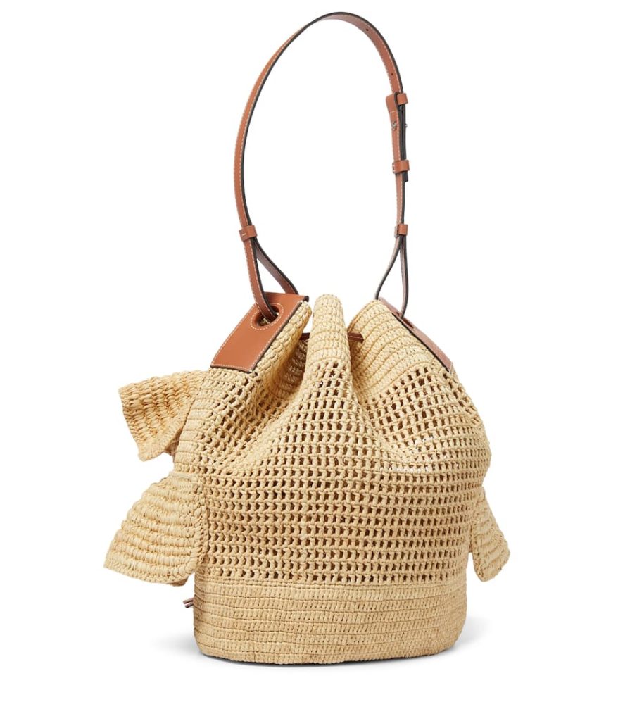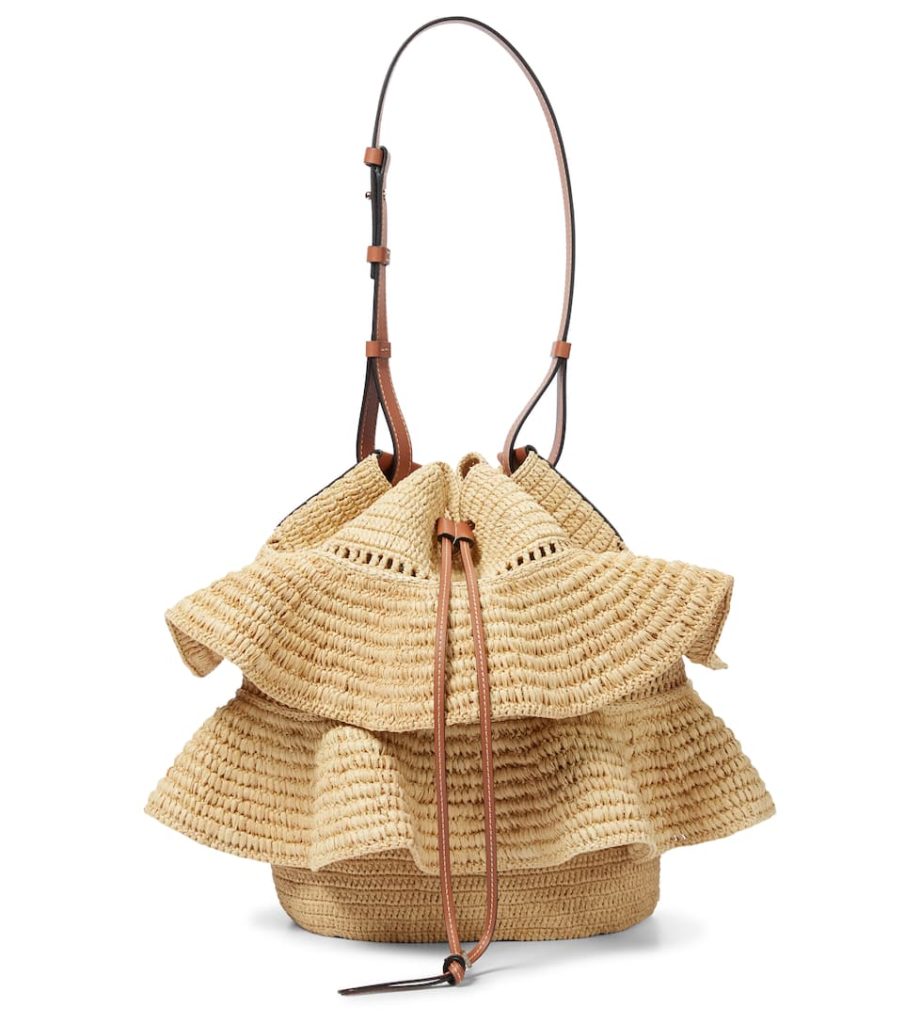 LOEWE’s noted Balloon bag is re-imagined with ruffled tiers as part of the label’s latest collection with Balearic-based boutique, Paula’s Ibiza. Woven in the house’s native Spain from raffia, the shoulder style has brown leather trims, including an adjustable strap and chunky drawcord fastening. It will bring a natural touch to beach and city looks.