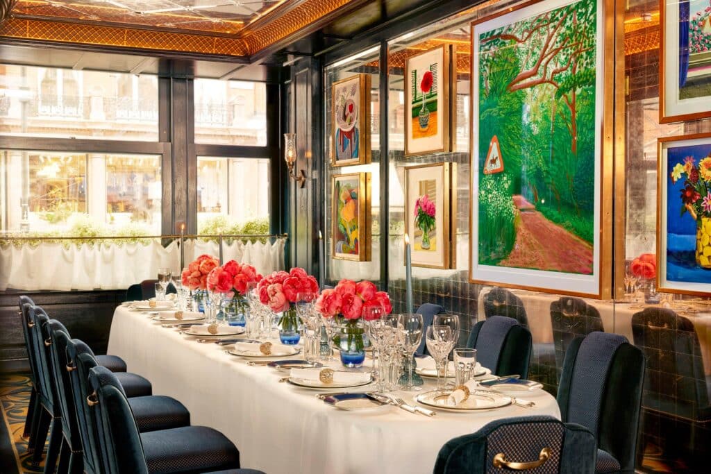 While George embraces an air of sophistication, it remains a space that effortlessly transitions from day to night. The terrace, serving guests until 1 am, invites you to enjoy London’s balmy summer nights in style. Additionally, the club introduces its first-ever private dining room, a beautifully appointed space adorned with Hockney’s artworks. This intimate setting accommodates 16 guests, perfect for creating unforgettable moments and celebrating special occasions.