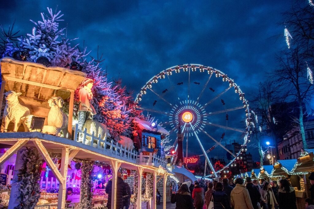 Among the 260 charming wooden stalls, discover delightful gifts and festive treasures. As you explore the brightly illuminated stands, treat yourself to smoutebollen/oliebollen (deep-fried sweet dumplings), jenever (gin), or warm Glühwein (mulled wine). At Marché aux Poissons, daredevils can spin the towering Ferris wheel, enjoying a breathtaking view of the adorned city.