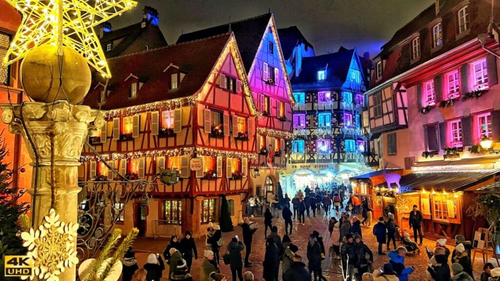 Nestled in France’s Alsace region, Colmar is a fairy-tale town that sets the stage for Christmas magic. Stroll along wooden chalets and cobbled streets adorned with lights and decorations, immersing yourself in a holiday wonderland. In the iconic “Petite Venise” district, charming boats illuminated with lights carry children’s choirs from the Colmar region, singing traditional carols on the canal.