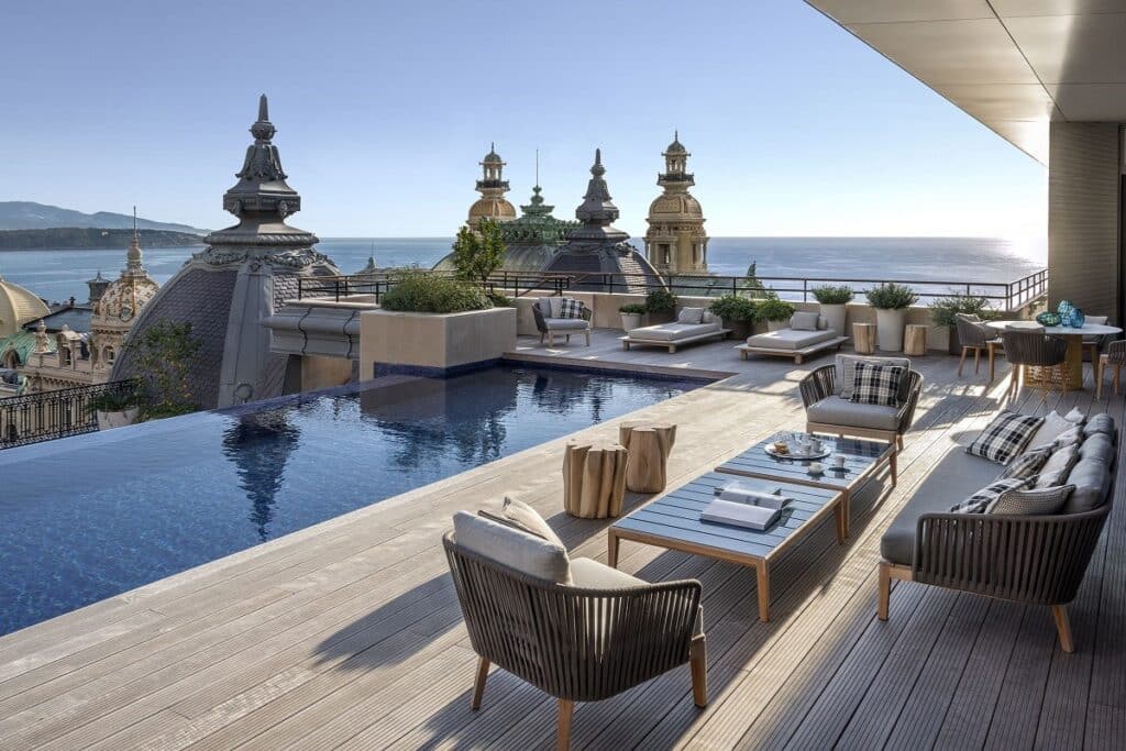 What truly sets the Prince Rainier III Suite apart is its expansive two-level terrace, which is 350 square metres. From this vantage point, our valued member was treated to a mesmerising view of the bustling heart of Place du Casino, a scene that defines Monte-Carlo’s vivacity. The terrace extends to offer breathtaking vistas of the Mediterranean Sea, providing a sweeping panorama that encompasses not only Monaco but also stretches across the horizon to France and even Italy in the distance.