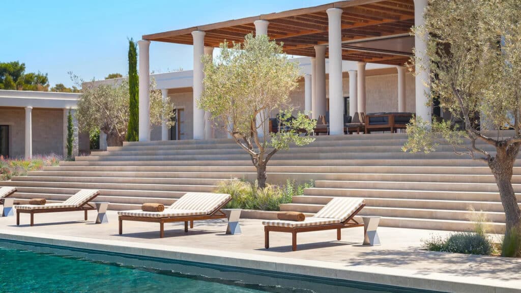 Set on hilltop bursting with olive and cypress trees, Greece ́s Amanzoe resort in Porto Heli commands an extraordinarily beautiful view of the undulating countryside and the Aegean Sea.