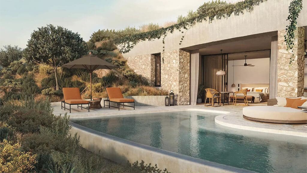 Inspired by both the beauty of the Messenian landscape and the idyllic colours of the Mediterranean, these tranquil suites and villas exude warmth, comfort and exclusivity.